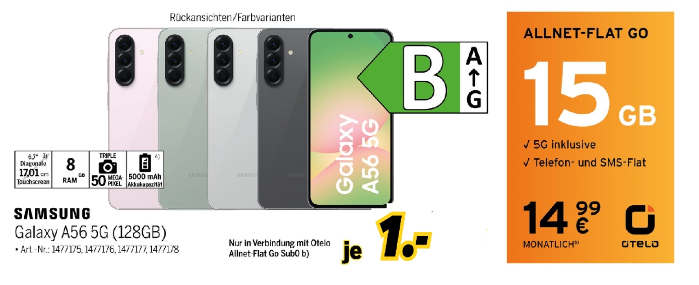 a5) Du bekommst als Neukund:in 5 € Rabatt auf den monatlichen Tarifpreis. Der Rabatt entfällt, wenn Du kündigst oder den Tarif wechselst.