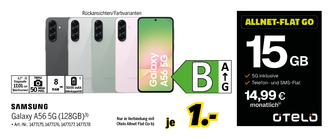 a5) Aktion Stand September 2024: Du bekommst als Neukund:in 5 € Rabatt auf den monatlichen Tarifpreis. Der Rabatt entfällt, wenn Du kündigst oder den Tarif wechselst.