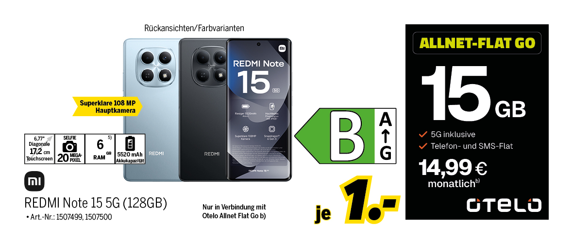 a2) Bei Neuabschluss oder Vertragsverlängerung eines Mobilfunkvertrages im Tarif Smart Entry, Lite, S, M, L, XL oder XXL bekommst Du einmalig 500 GB im Inland und 100 GB im EU-Ausland für die gesamte Vertragslaufzeit (24 Monate) zusätzliches Datenvolumen. Das Datenpaket steht nach dem Verbrauch des Tarifinklusivvolumens zur Verfügung.